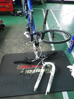 MTBのFサスの動きが気になりだしたのでメンテ。 スプリングにけっこう錆び出てきてます・・・ (ちなみに、このスプリング…