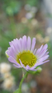 今朝は15℃と、いきなり寒い朝・・・ (ヒメジョオン) いつの頃からか庭の隅に勝手に茂りだした”ススキ”に花(?)が咲き…