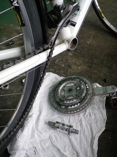 今預かってるMTBのBBとチェーンの交換。 SHIMANOさんの純正品を使います。 自転車のチェーンをカットする時は、 …