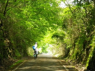 サイクリングロードに復帰すると、 また気持ちのいい森の中の道(^-^) 12:20、”天瀬駅”に到着。 (ケムシに襲撃さ…