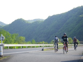 明るいうちに宿へとがんばって川沿いを北上中・・・ この丘を越えれば”津山”! 17時、予定の時間通り今回のお宿に到着(^…