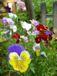 今朝もさわやか(^-^) ヴィオラやパンジー、そろそろ新しいつぼみも少なくなってきた。 苔エリアでは、”姫シャガ”が開花…