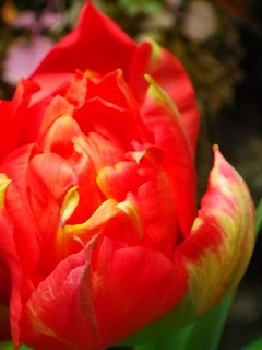 今朝はくもり。 (白に続き、赤い八重咲きチューリップも咲きました) 1年中ほったらかしのイチゴも開花。 今年は苗を新たに…