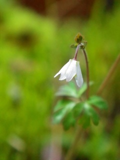 今朝も霜降りる寒さ・・・ そんな中、”イロハモミジ”開花。 去年道の駅で買ってきた”ユキザサ”のポットに新芽。 (セリバ…