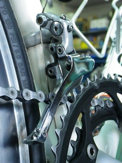 ロードバイクのフロントディレイラーの感じが少しおかしいので調整。 アウターに入れる時にレバーを押し込んでも入りにくいので…