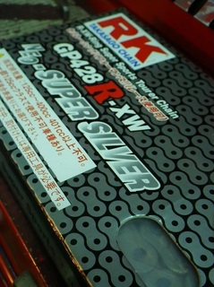 続いて、チェーン交換。 ”RK GP428R-XW” カラーは”シルバーメッキ” まずはノーマルチェーンのピンのカシメを…