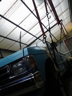 東からやってくるという異例のコースをたどる”台風12号”に備えて、 カーポート(片持ちの支柱)の屋根とダットラを結合! …