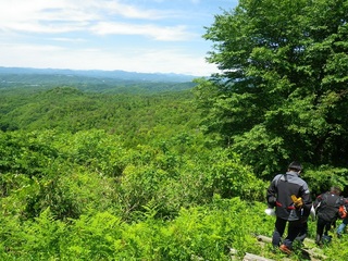 13時、そろそろ下山します。 (中国山地が遠くの方までよく見えています) 山頂直下をぐるっと回る林道に入ります。 (ビッ…