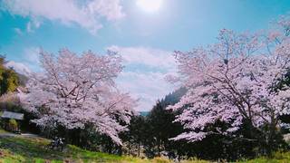 今朝見てきた桜は、 ”天神社”のソメイヨシノ。 満開は通り越し、桜吹雪。 ちょうど桜に日が差してきた(^-^) 蔵王山を…