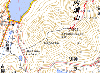 先日の”内浦山”の茂みで登山道のわかりにくかったところをふり返ってみます。 (地図読みの練習なのでGPSは軌跡を取るため…