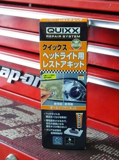 業者さんにおすすめしてもらった、 ”クイックス ヘッドライト用レストアキット”を試してみます! 樹脂レンズの黄ばみやくす…