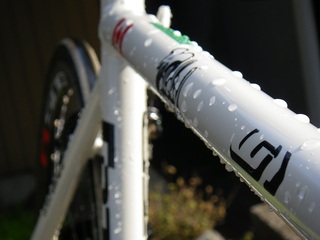 先日の鞆サイクリングではしっかり潮風を浴びたので、 普段は乾拭き掃除ですが、水かけ洗車をしてあげます。 水切りする時はボ…