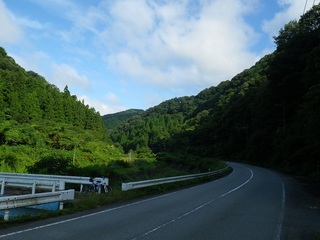 県道38号線に入り、いよいよ坂本番! グルメライドは、やまなみ街道サイクリングロードの”Y-10”というコースを走ります…