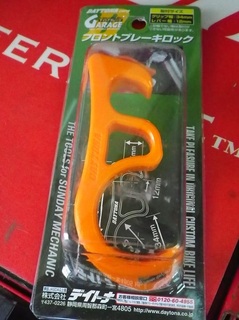 デイトナさんの”フロントブレーキロック” リヤを浮かせて整備する時とか動いちゃ困る時に今まではでっかい輪ゴムでフロントブ…