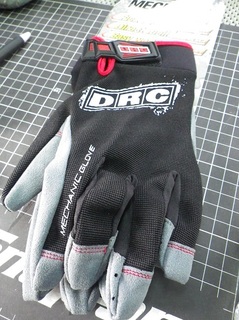 ”DRC メカニックグローブ”¥2700(税別) 立体裁断なのか、はめると自然と手がこの形になる。 フィット感はいい(^…