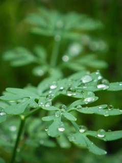 昨夜のひさびさの大雨もひとまず落ち着いてる。 (ルー) 庭は十分すぎるほど潤った。 水を得て”トクサ”の新芽が輝いていま…