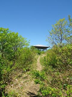 山頂の休憩所が見えてきた。 振り返ると歩いてきた尾根が全部見えるとこまで上がってきてる。 (クマンバチ多かった) 10:…