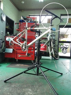 レストア中のMTB。 (ハンドルとステムは錆び落として塗った) リヤカセットは磨けば使えそうなので、 バラしてひとつずつ…