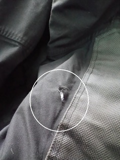 冬のライディングの必需品”オーバーパンツ”の裾が切れた・・・ これじゃ防水の意味がない! (これ履いて山行くからどうして…