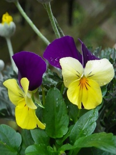 今朝は小雨。 (ヴィオラ) ”ジュウニヒトエ”は、引っぱってもしっかりしてるので、 どうやら子株は根付いたよう。 (親株…