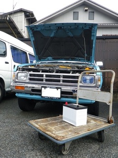 冬を前に、 最近なんだかあやしい予兆があるダットラのバッテリーの交換。 見てみるともう6年も使っとんじゃな~! (ソーラ…