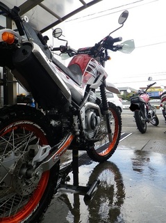 お昼休憩にセローの洗車(^-^) リヤキャリパーに枝が突き刺さってました・・・ なんか、セロー250になってから、よく木…