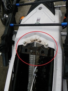 セローの洗車。 セロー250は、きれーに洗ったつもりでも、 シート下のこの部分に汚れがたまってます。 シートを外さないと…