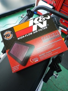 エアーフィルターを”K&N”さんのにした! (2月に注文してたのがやっときた。輸入品だから仕方ないか。) 純正はビスカス…