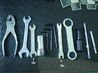 そういえば、セローの車載工具にどんな物が入ってるのか見てなかったな~と思い、 確認。 けっこう充実してます。 薄いスパナ…
