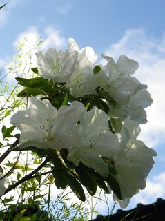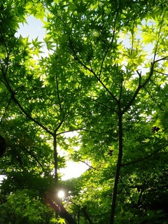 今朝はいい天気。 イロハモミジの新緑がさわやか。 ”ツツジ”の白もさわやかですね(^-^) クルミの殻に植えてる”プロリ…