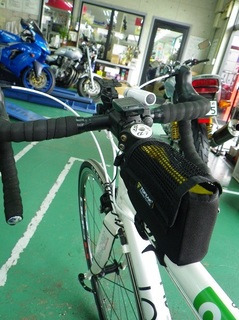 1泊サイクリングに備えて、 もう何年も前に買って全く使っとらん”トップチューブバッグ”をつけました。 今回はロードバイク…