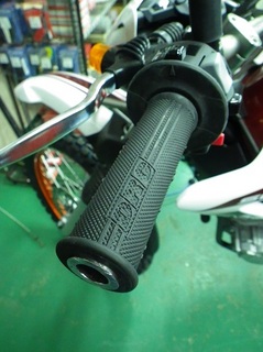 今日の作業は、どれくらいの長さのブレーキホースが必要か計測。 グリップはDRCさんの”チームグリップ” これ、にぎり心地…
