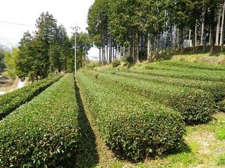 幸農園さんに行くと誰もいないので、 近くにある幸農園さんのお茶畑に行ってみると作業されていました。 新芽のために葉を切り…