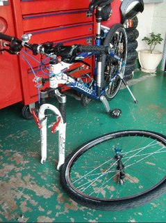 今日は朝からMTBのパンク修理・・・ タイヤには何も刺さっておらず、チューブのバルブの近くのゴムの劣化によるパンクでした…