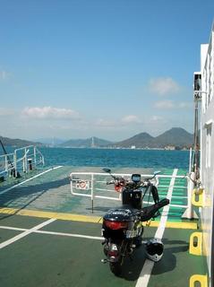 積善山をおりてきて、長江港からフェリーに乗って因島へ! (遠くに見えているのは生口橋です) 因島に上陸して、島の東側の海…
