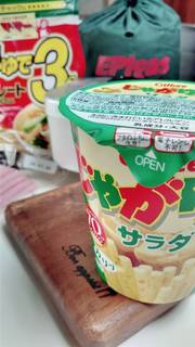 昨日の庭飯は、 じゃがりことマカロニのグラタン! じゃがりこにお湯を注いで混ぜるとポテサラになるなんて、 最初に発見した…