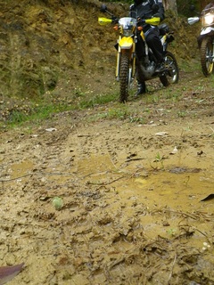 坂本林道内で新しめのオフタイヤの足跡発見。 同じ方向に進んでるみたいなので出合い頭はなさそう。 (引き返して来たら知らん…