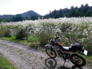 県312を南下してると林道入り口発見! 入ってみるとススキが見事な走りやすい抜けてる林道でした(^-^) ススキの林道出…