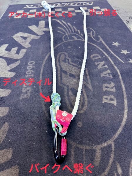 この構築でいけば、崖下に落ちたバイクを半分の力で引き上げられるし、引っ張り上げたバイクが”ディスティル(摩…