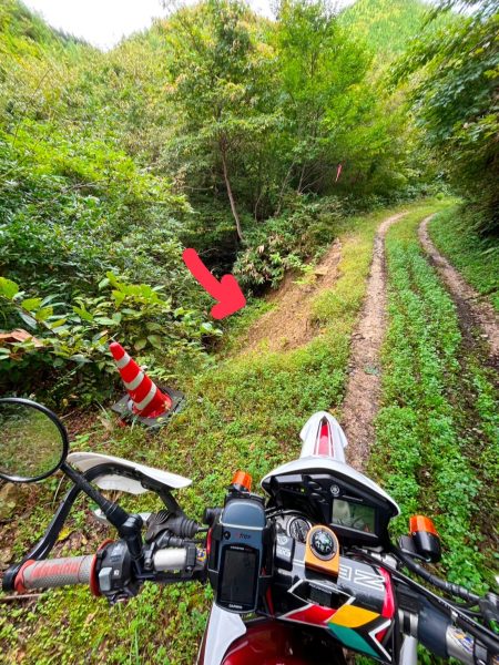 今回はおそらく赤土がヌタッてそうなので、奥には入りません🏍