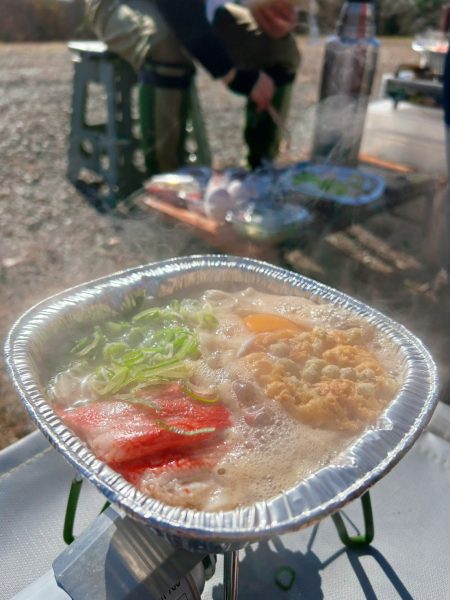 お昼は外で鍋焼きうどん🍜😋