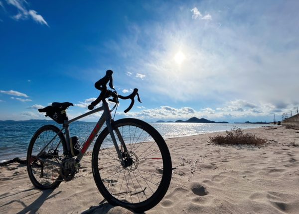 いつもの砂浜撮影中も、強風で何度も自転車が倒れ砂まみれに・・・