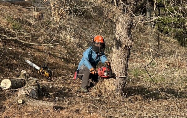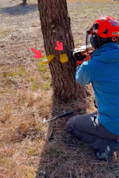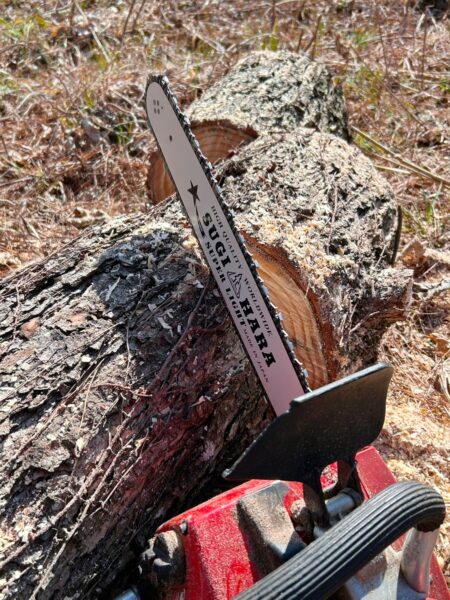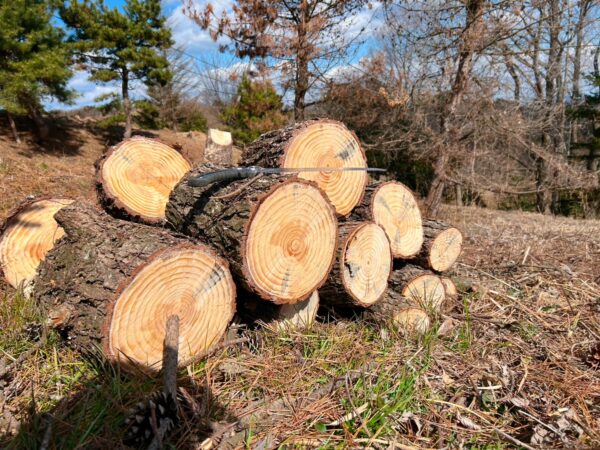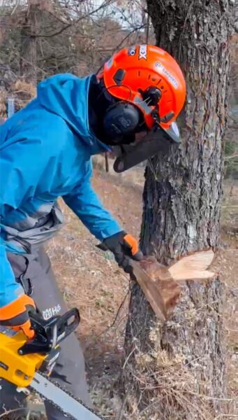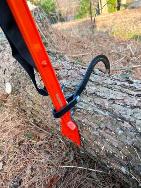 最近手に入れた”フェリングレバー”、てこの原理で転がってる大きな丸太をいとも簡単に回転させることができる!👍