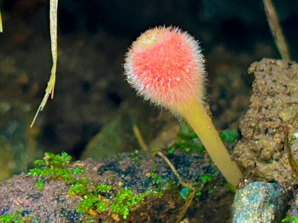 ”シロキツネノサカズキモドキ”は、柄が伸び最終段階に向けて成長中🍄