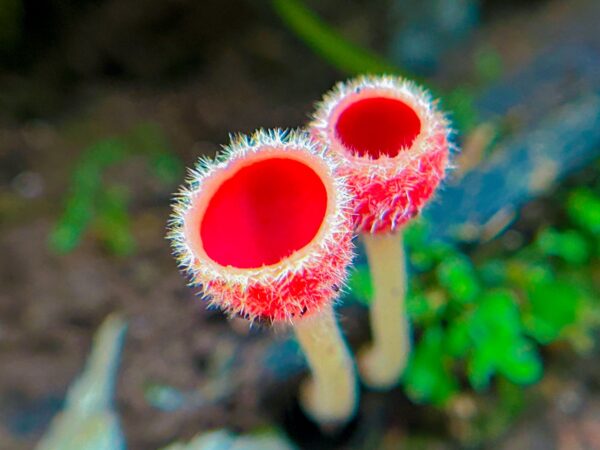 1月から見守ってきた”シロキツネノサカズキモドキ”は、ようやく”盃🍷”が開き、胞子を飛ばし始めていました🍄
