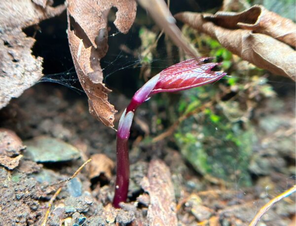 落ち葉の下に”ヒトリシズカ”の新芽を発見!👀