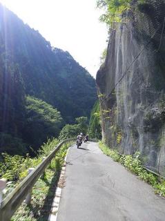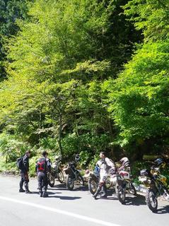ダム最後は”弘沢林道”を抜けてダム林道群から出ますが、 ここでセローのKさん、転倒! 路肩ギリギリでとまって、あぶないあ…