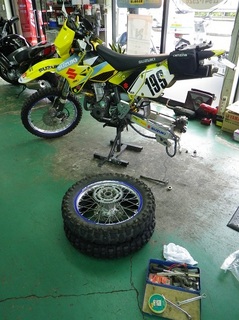 今日は、お昼休憩にDRZのタイヤ交換。 今度もピレリさんの”MT21”です! リヤのサイズは、120に戻しました。 荒れ…