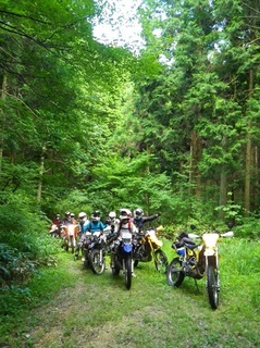 続いて”通ヶ谷山林道” 通ヶ谷山を出たとこで、 遠方組のセローのお二人と、ガス欠寸前のCRMのKさんとはお別れ。 残り組…