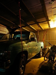 昨夜は、”避難準備情報”が出るほどでした。 古い方のカーポートの支柱が風であおられ、壊れそうで怖いので、 ダットラと結合…